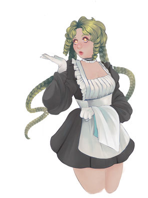 A series of characters for a potential slice of life comic staring a sheltered heiress and aspiring artist who catches the eye of a model during one of her fittings, quite literally through her window, while residing in her family's city home. The model takes her under her wing and chaos ensues as the heiress’s butler and model’s friend are inevitably involved.